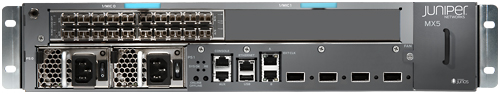 Граничные устройства Juniper MX5 предназначены для корпоративных сетей и сетей провайдеров, с полнофункциональным набором сервисов и услуг. Маршрутизаторы Juniper MX5 можно использовать в качестве пограничного маршрутизатора для соединения с WAN-средой, ядра сети, для агрегации удаленных узлов или для корпоративных и мобильных сервисов.